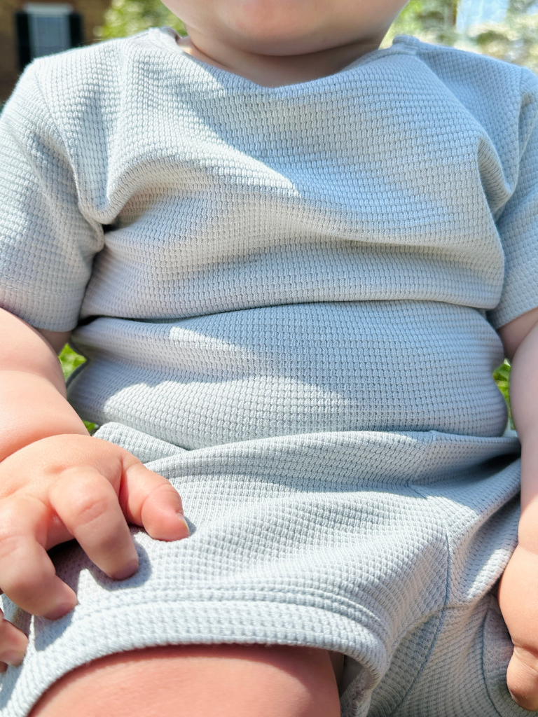 Our Everyday Set is a wardrobe must-have! Made of 100% Organic Cotton -Waffle Knit Fabric -Functional Drawstring -Snap Shoulder for easy changing -Sustainably sourced and ethically produced.